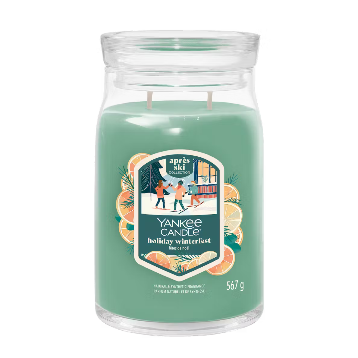 Holiday Winterfest ist ein festlicher Duft, der sofort an ein winterliches Skigebiet erinnert. Der Duft beginnt mit spritzigen Zitrusnoten und frischen Kräutern, bevor sich die Herznote mit Noten von Tannennadeln, Tannenzapfen und Zitronenschale füllt. Die Basis vereint warmen Balsam, frische Kiefer und einen Hauch süßen Bourbon für ein gemütliches, winterliches Erlebnis.