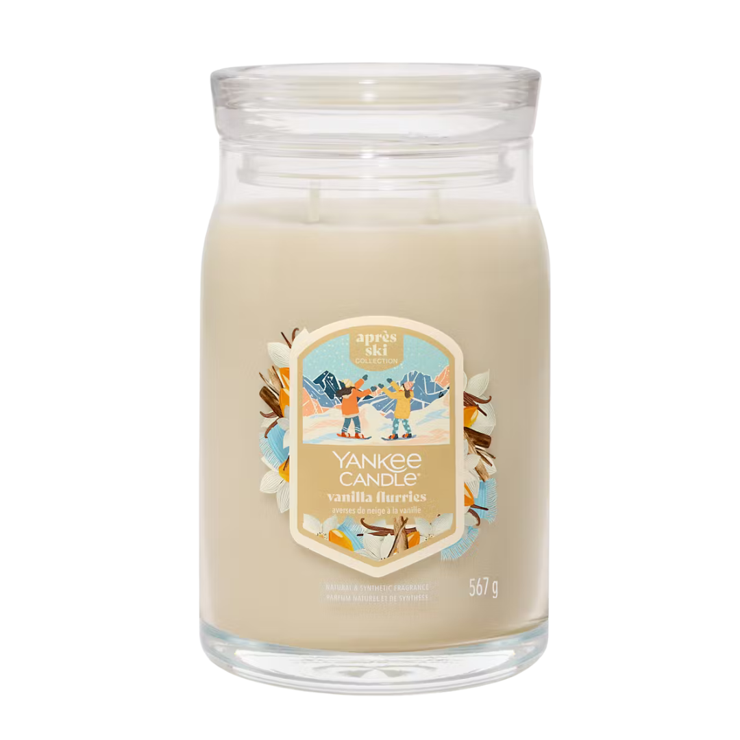 Vanilla Flurries est un parfum doux et élégant qui évoque le confort hivernal. Il s'ouvre sur des notes crémeuses de vanille, de pêche et de noix de coco, suivies de cristaux de sucre, d'iris et d'ambre, qui confèrent au cœur une douceur pétillante. Le fond est complété par du vétiver, de la mousse de chêne et une touche de cuir, conférant à la fragrance une note chaleureuse et raffinée.
